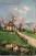Fröhliche Ostern - Bauerngehöft mit Henne und Hahn im Mittelpunkt (Aquarell)