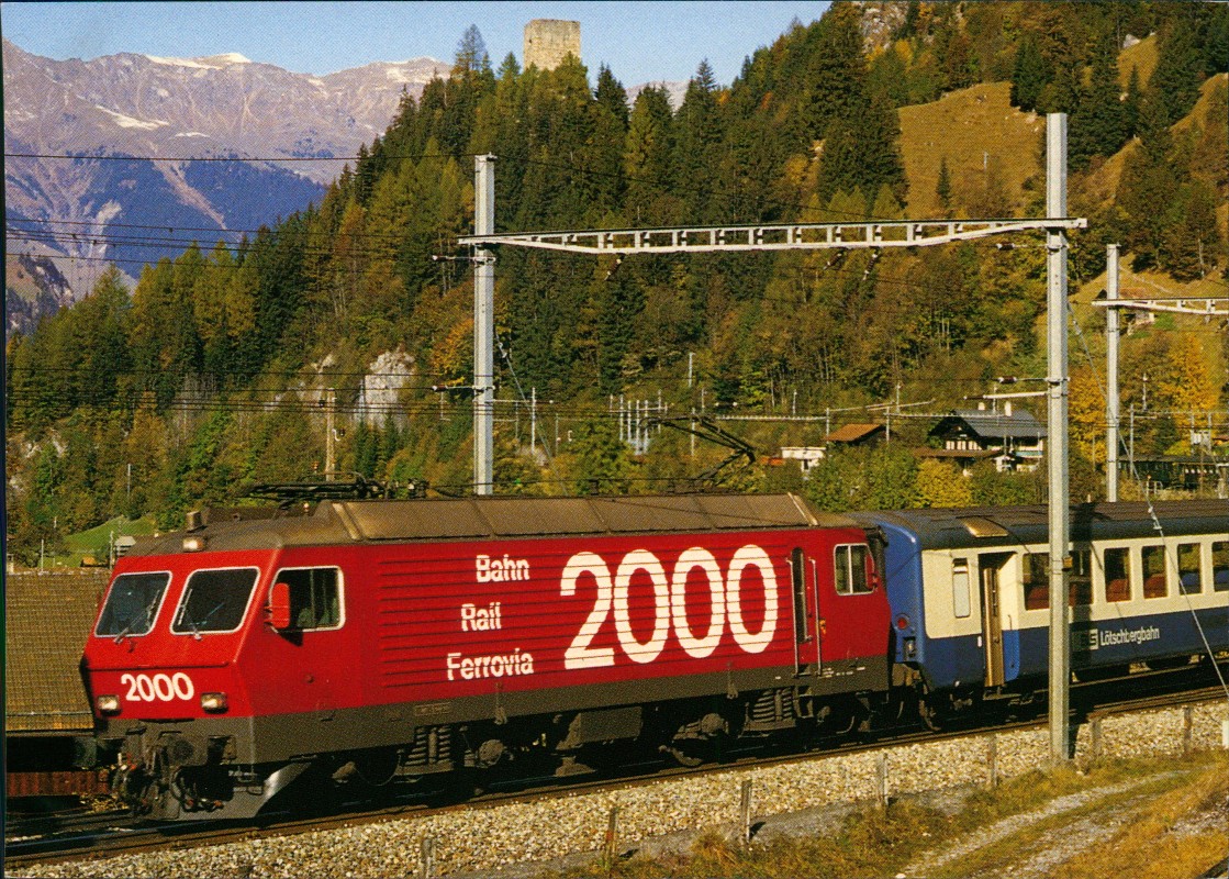 Photo Card: Eisenbahn Re 4/4 mit Schnellzug Brig-Bern bei Blausee