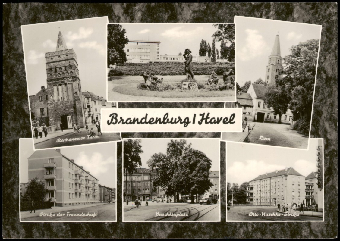 Postcart: Puschkinplatz. Straße der Freundschaft, Nuschke Straße - Brandenburg an der Havel