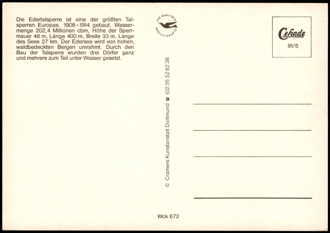 Postcart: Edertalsperre, Scheid, Luftbild - Waldeck (am Edersee)