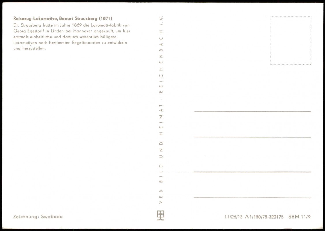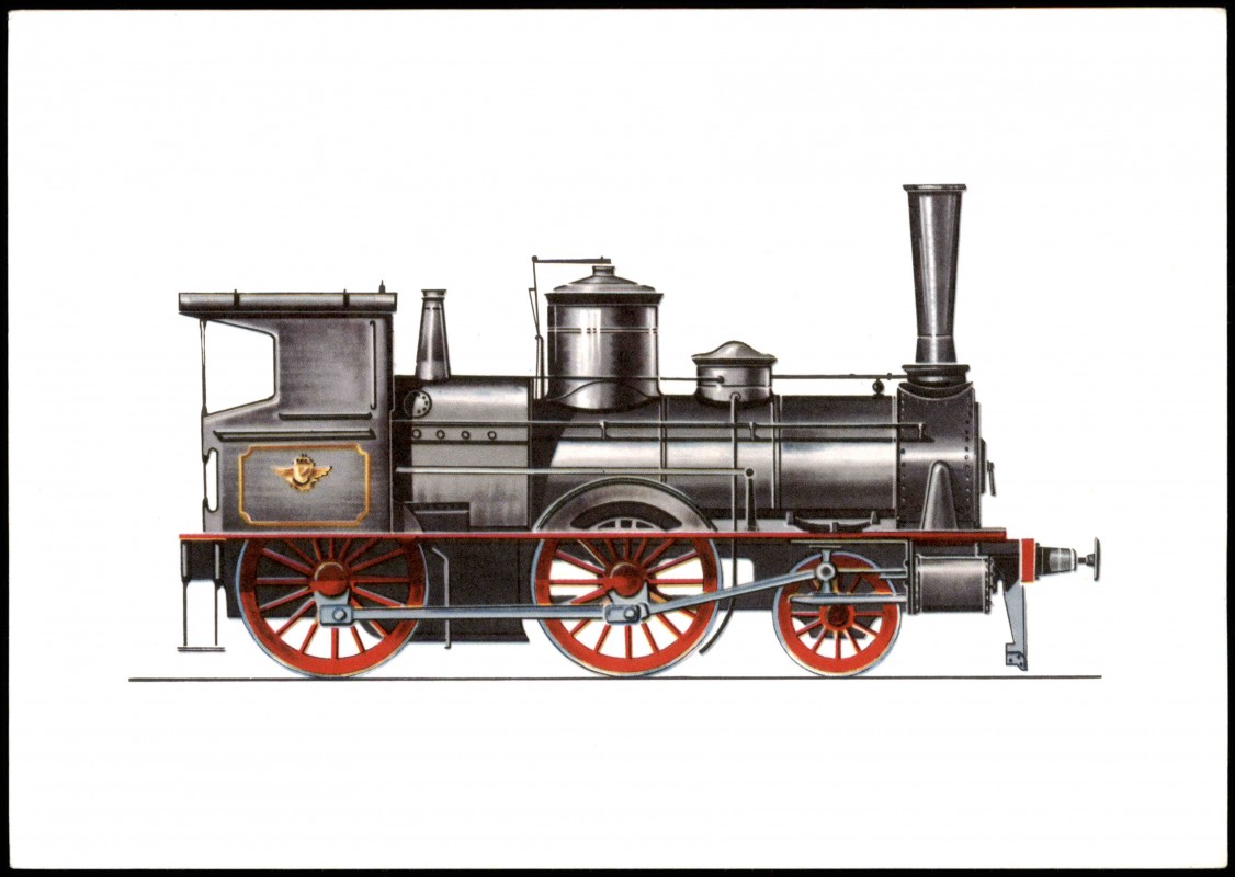 Postcart: Reisezug-Lokomotive Bauart Strousberg (1871) nach Zeichnung Swoboda