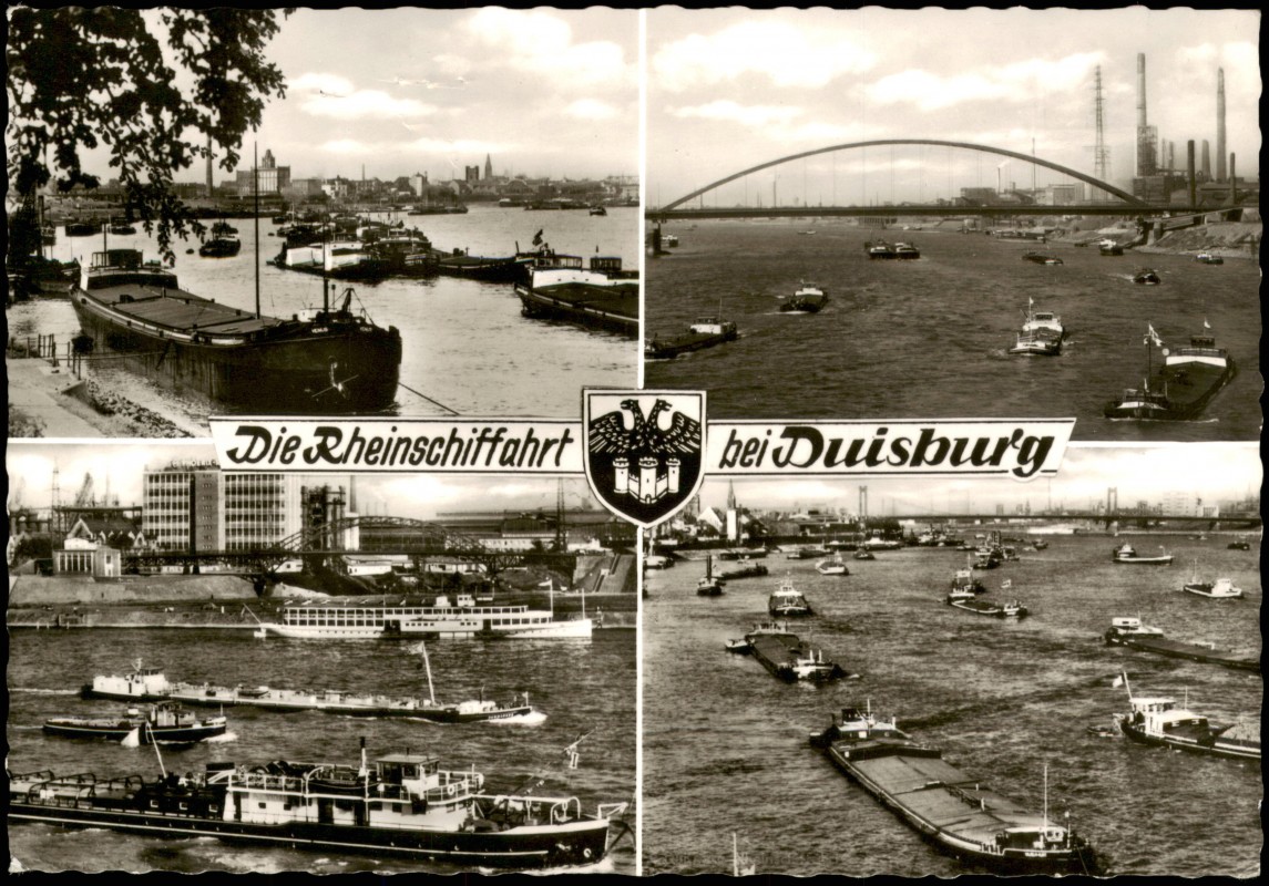 Postcart: 4 Bild Rheinschiffahrt und Indutsrie# - Duisburg