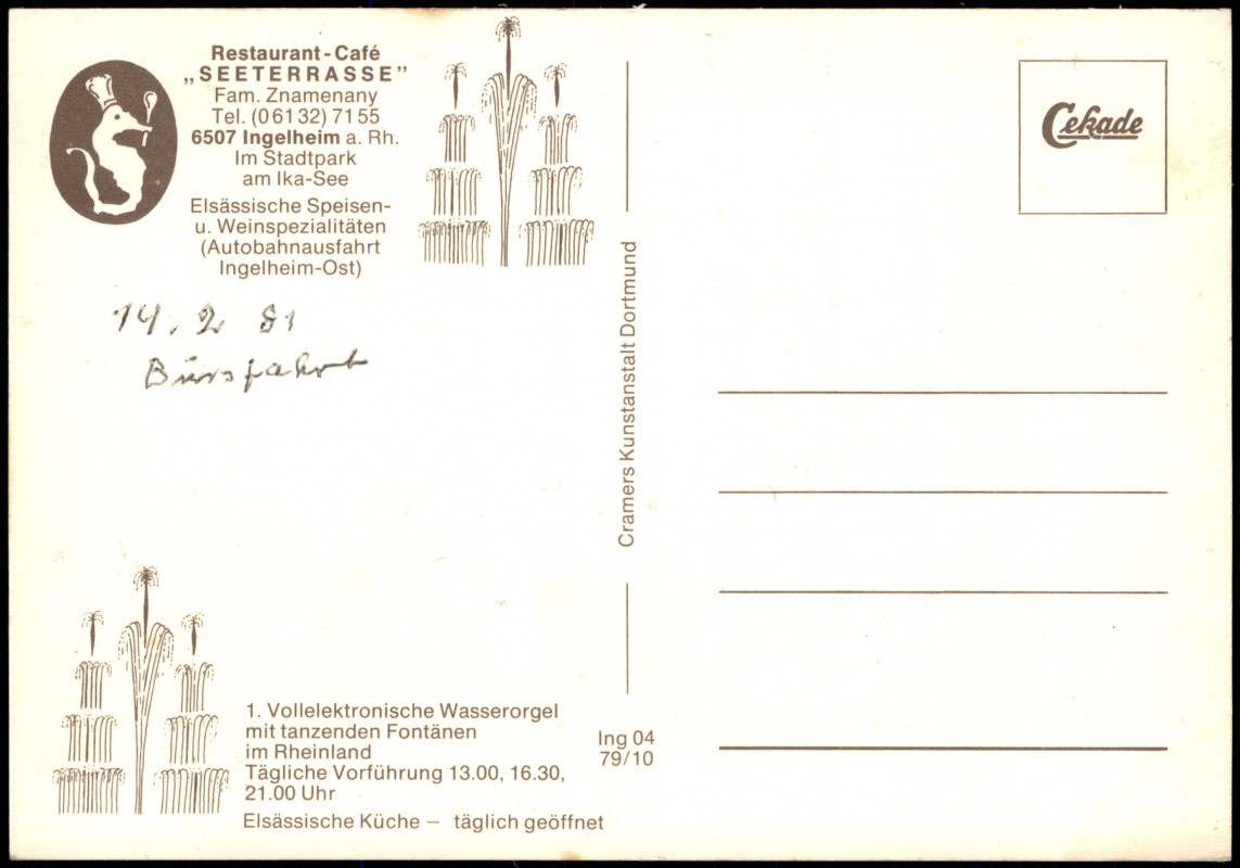 Photo Card: Mehrbild-AK Restaurant Café SEETERRASSE Fam. Znamenany Im Stadtpark - Ingelheim