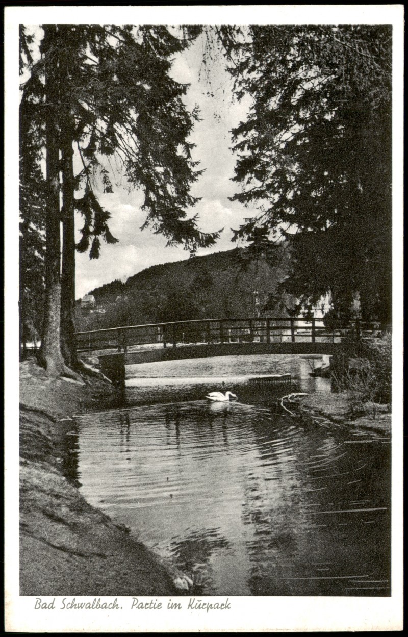 Postcart: Partie im Kurpark - Brücke Schwan - Bad Schwalbach