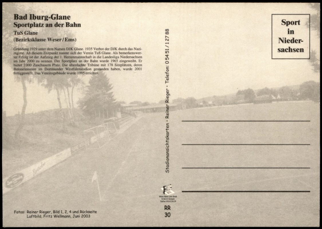 Postcart: 1929 TuS GLANE Spoprtplatz an der Bahn - Glane-Bad Iburg