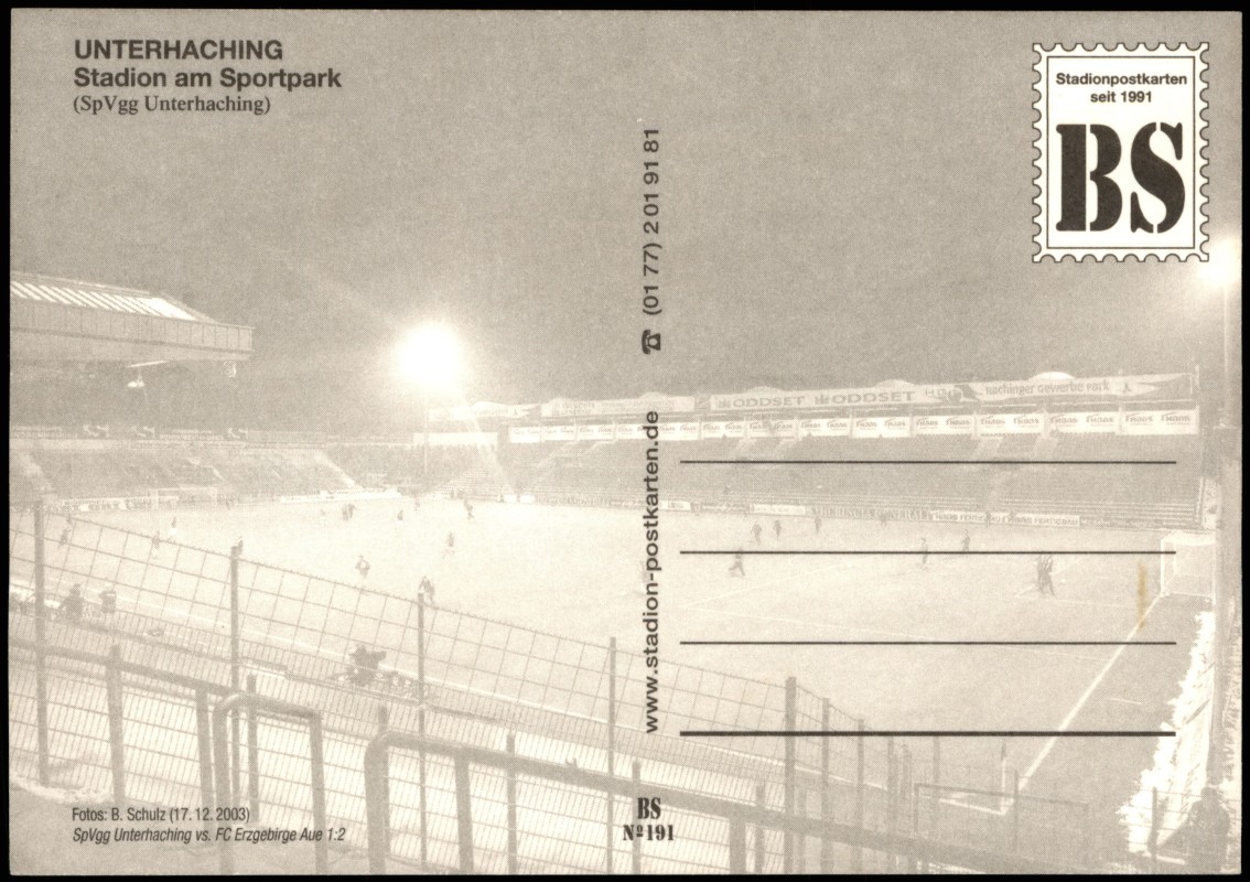 Postcart: Stadion am Sportpark, Flutlichtspiel gegen Aue - Unterhaching (LK München)
