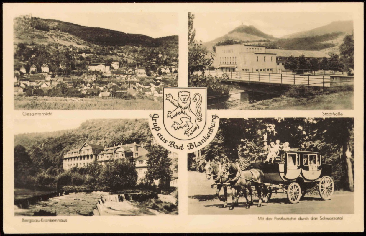 Postcart: Stadthalle, Totale, Kutsche - Bad Blankenburg