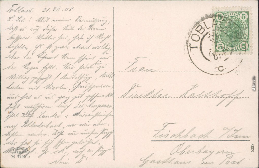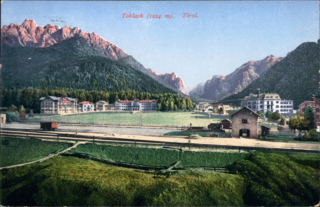 Postcart: Panorama-Ansicht - mit Bergmassiv - Dobbiaco