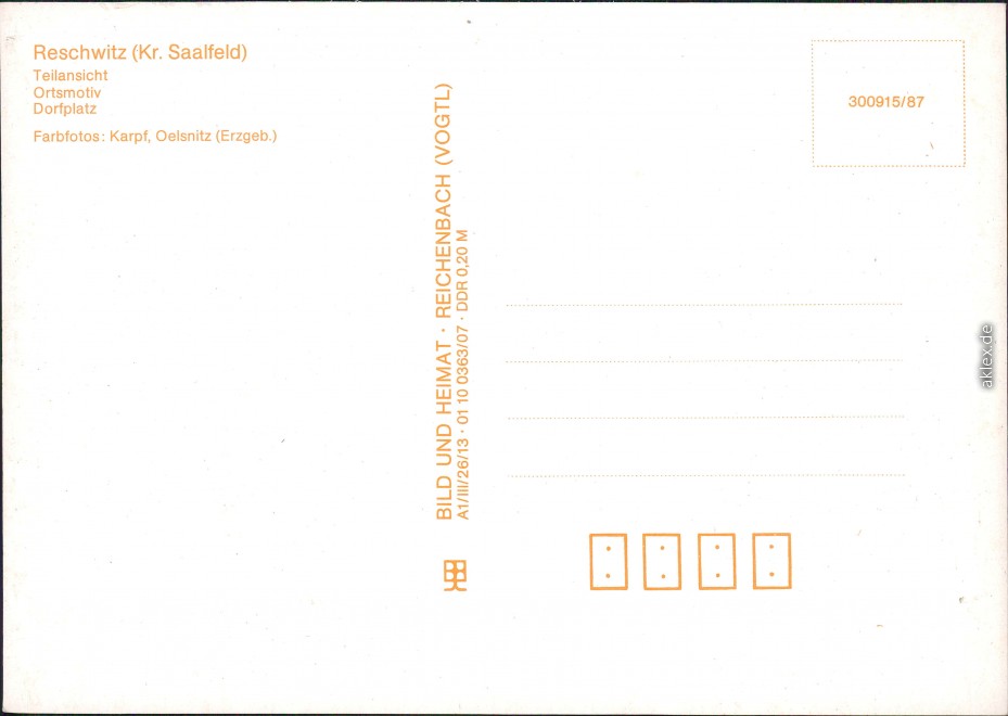 Postcart: Teilansicht, Ortsmotiv, Dorfplatz - Reschwitz-Saalfelder Höhe