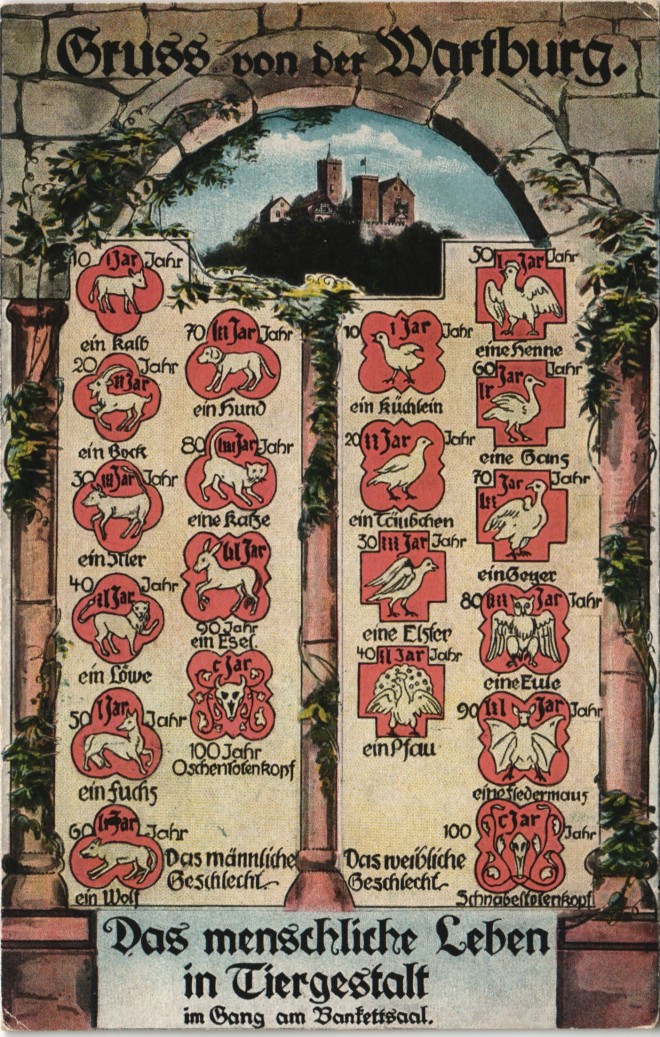 Postcart: Wartburg - das menschl. Leben in Tiergestalt im Gang am Bankettsaal - Eisenach