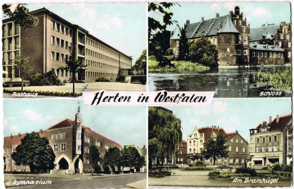 Postcart: Rathaus, Schloß, Gymnasium, Am Bramhügel - Herten (Westfalen)