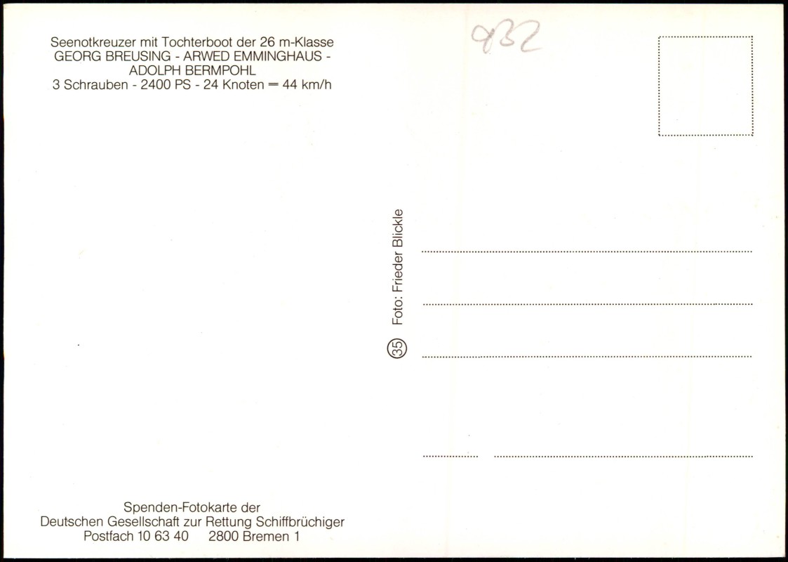 Postcart: Seenotkreuzer mit Tochterboot der 26 m-Klasse