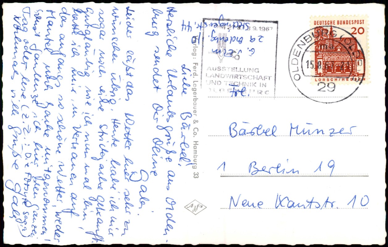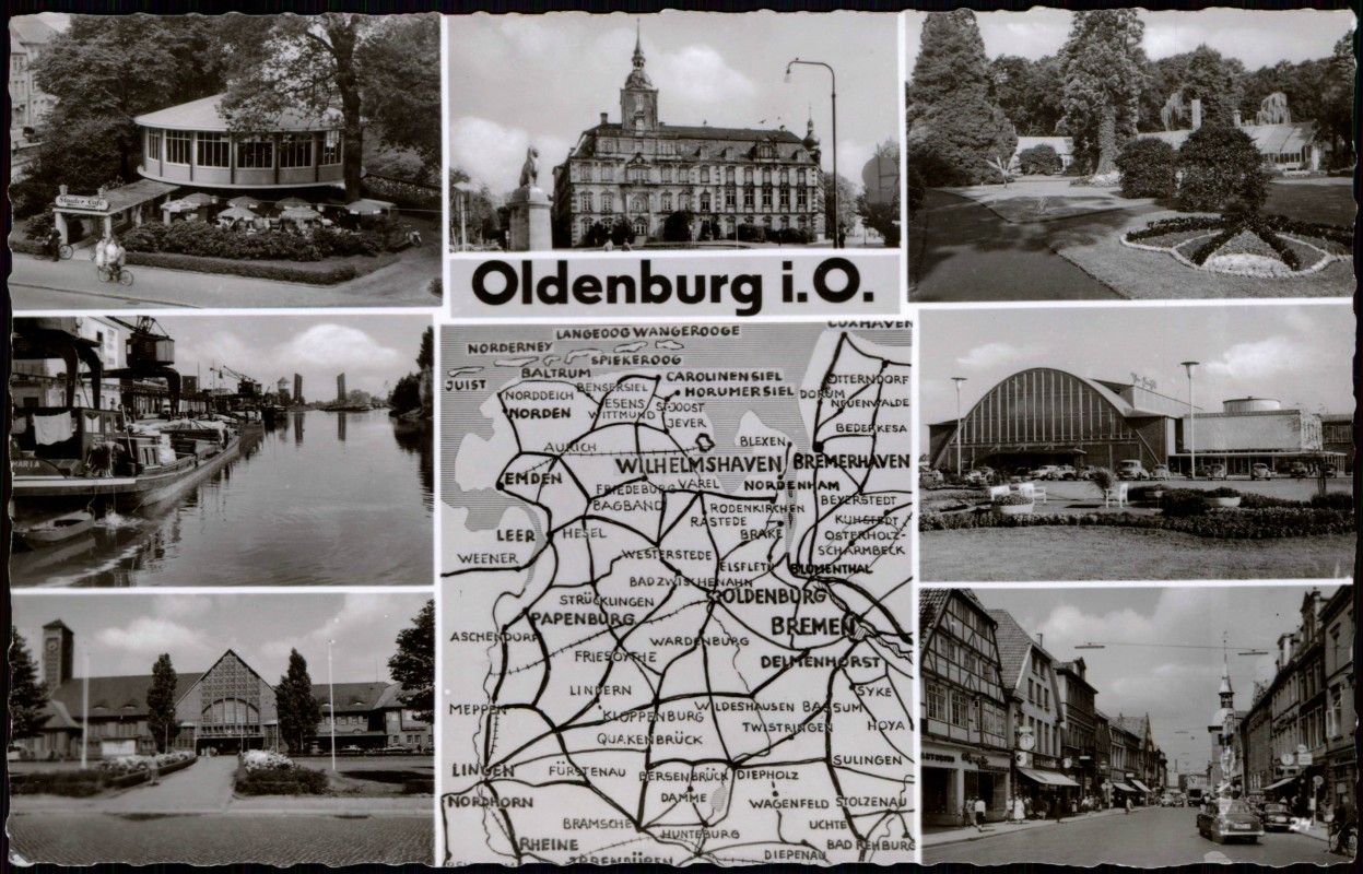 Postcart: Landkarte: Bahnhof, Straße, Halle - Oldenburg