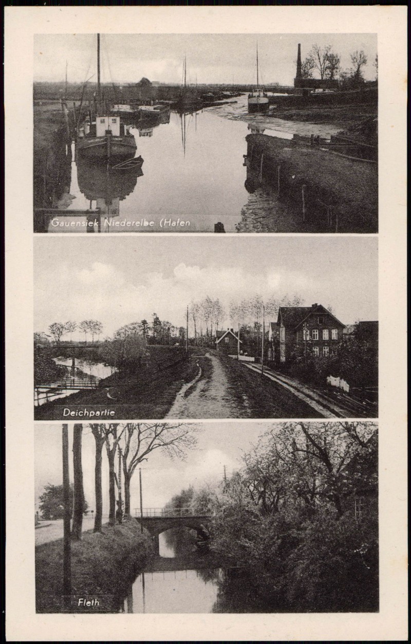 Postcart: Gauensiek Niederelbe Hafen Deichpartie 3 Bild - Drochtersen