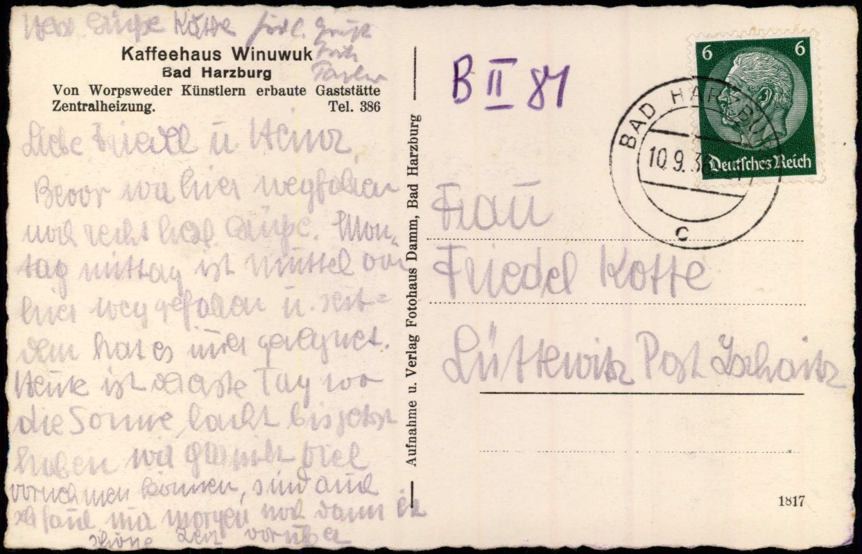 Postcart: Cafe Winuwuk - Seitenansicht - Bad Harzburg