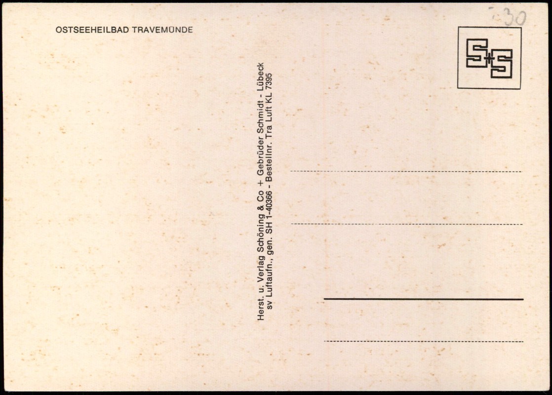 Postcart: Luftbild Hotel Hafen Segelschiff - Travemünde-Lübeck