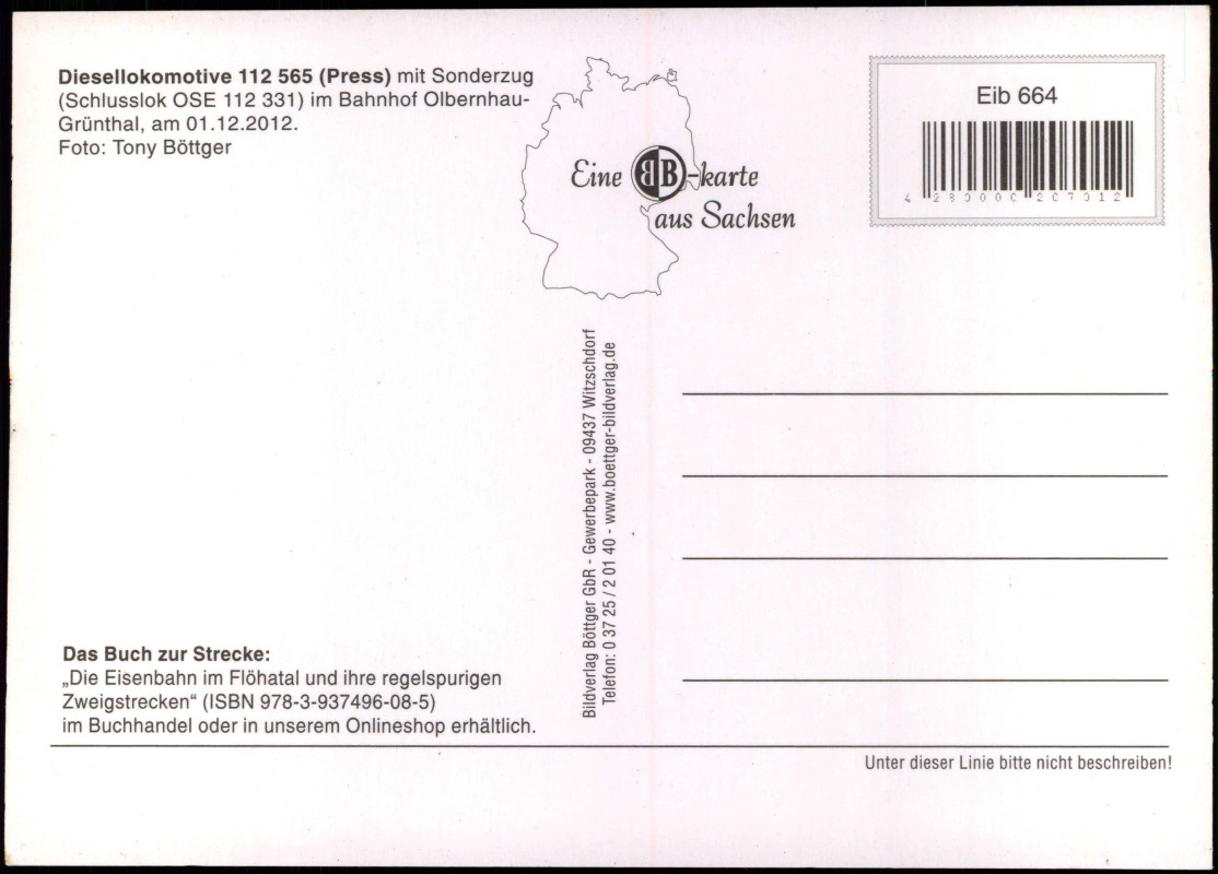Photo Card: Eisenbahn Motiv-AK Diesellokomotive (Press) mit Sonderzug im Bahnhof Olbernhau-Grünthal