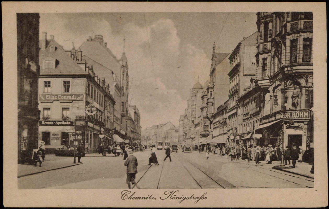 Postcart: Königstraße Geschäfte Kronen - Apotheke - Chemnitz