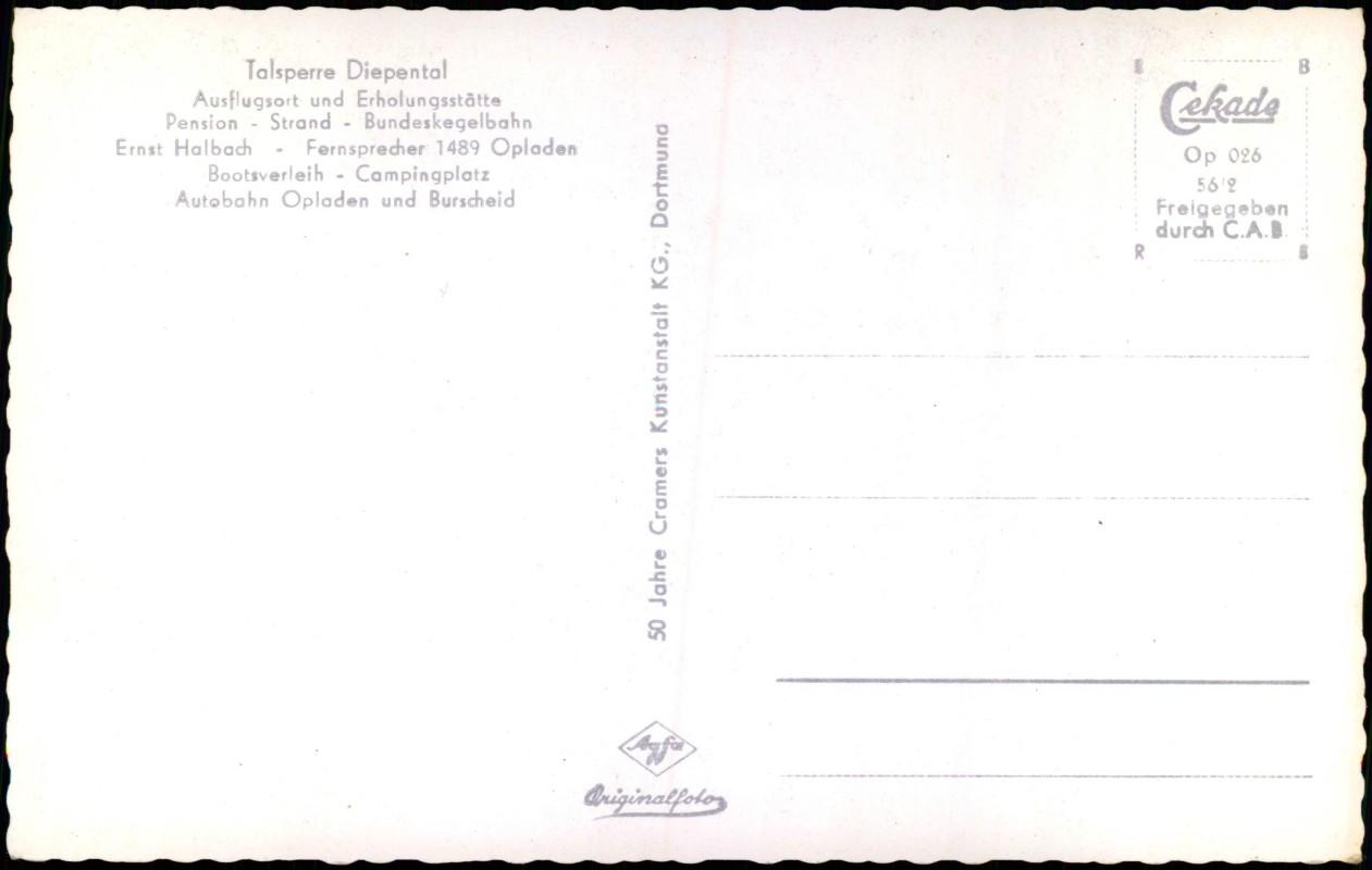 Postcart: Luftbild Talsperre Diepental Colorfotokarte - Leichlingen