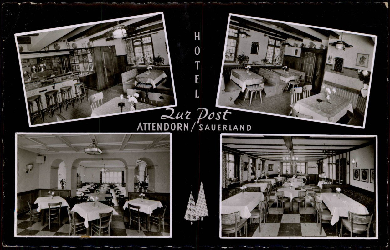 Postcart: Mehrbild Hotel zur Post Innenansichten - Attendorn