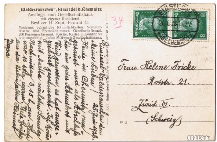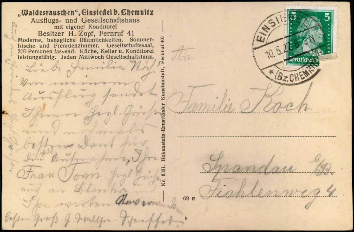 Postcart: Gaststätte "Waldrauschen" - Einsiedel-Chemnitz
