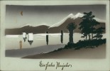 Photo Card: Glückwunsch Neujahr 12 Uhr neben Glückssymbol Hufeisen Fliegenpilz