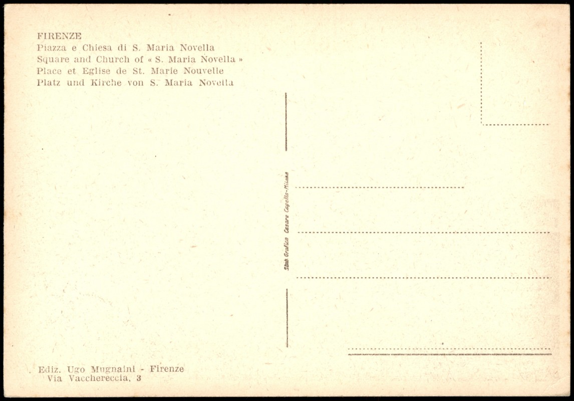 vintage Postcard from 1930: Piazza e Chiesa di S. Maria Novella:: Florence Address side