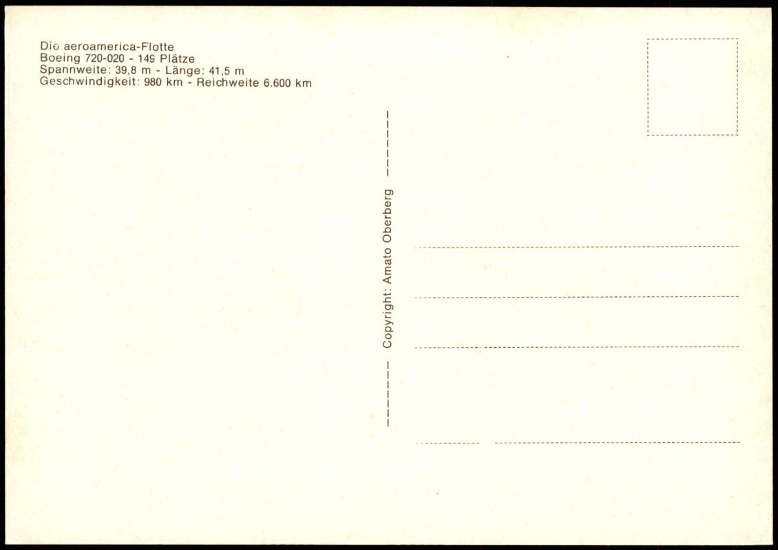 Postcart: Flugzeug Airplane Avion aeroamerica-Flotte Boeing 720-020