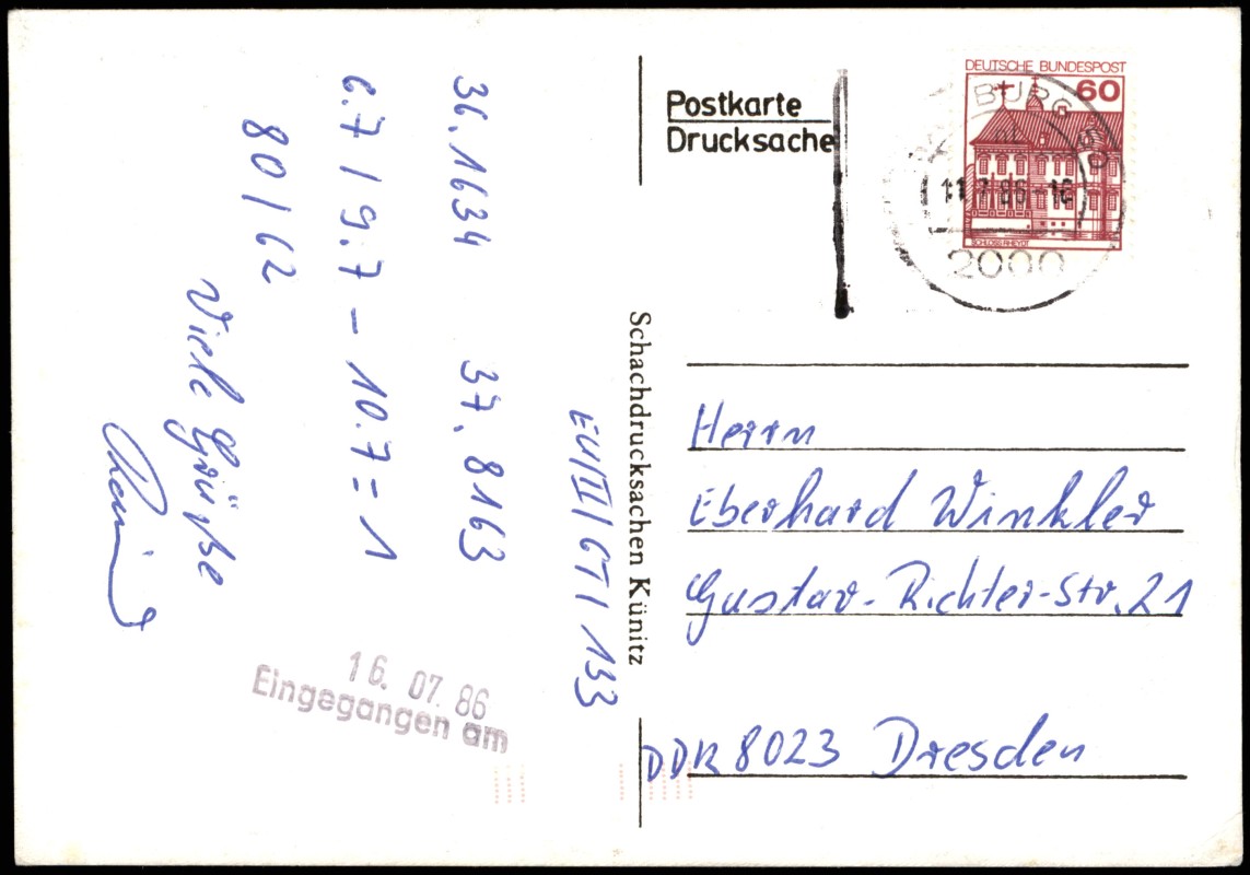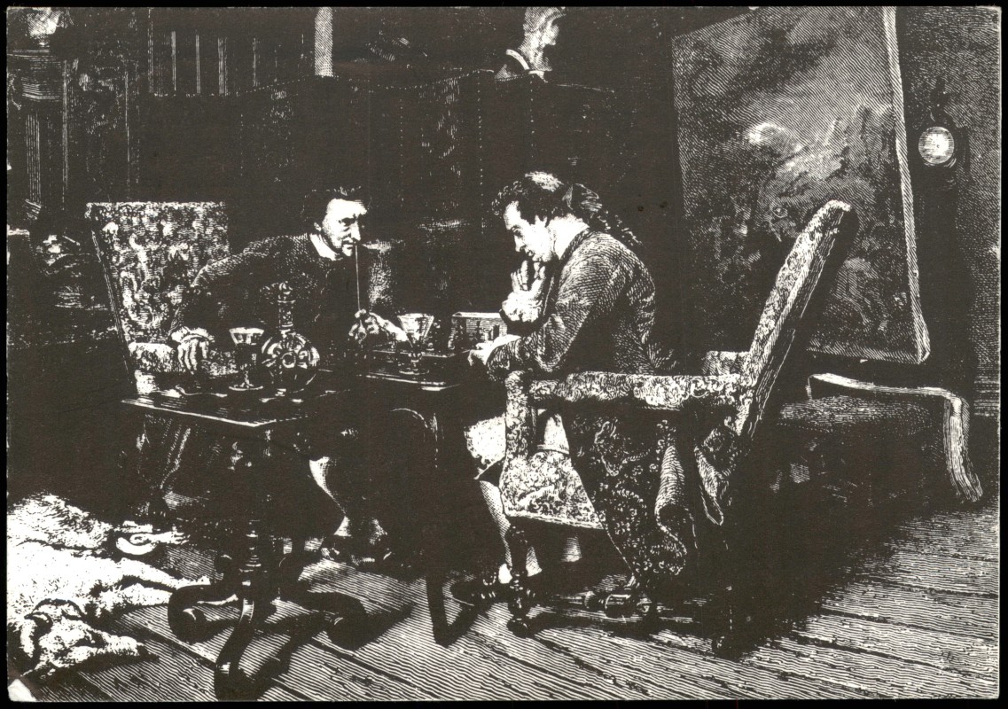 Postcart: Schach Chess - Spiel Künstlerkarte Männer beim Spiel