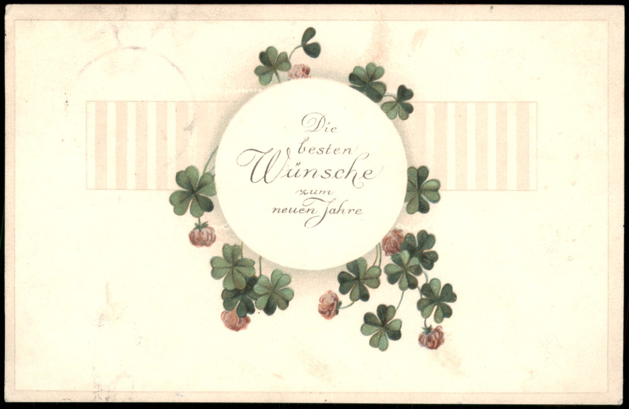 Postcart: Neujahr Sylvester New Year - Ornament, Kleeblätter
