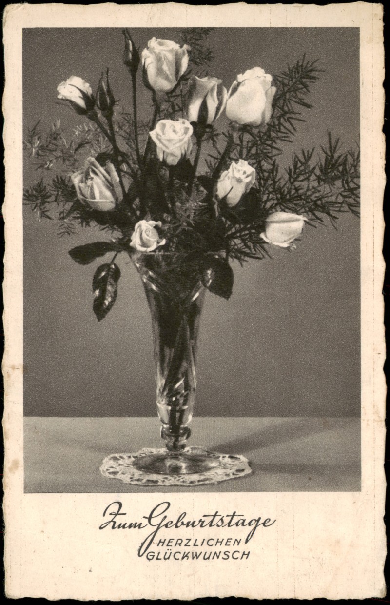 Postcart: Glückwunsch Geburtstag Birthday Rosen in Kristallvase