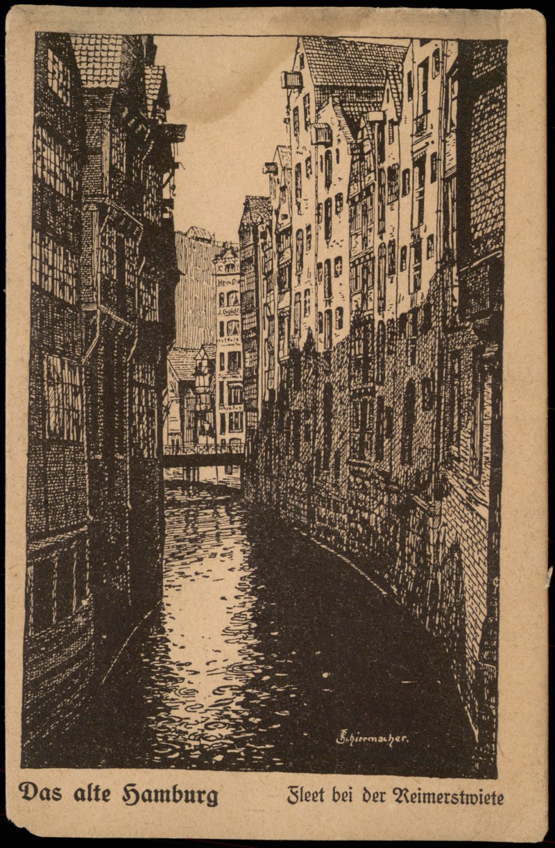 Postcart: Fleet bei der Reimerstwiete (Künstlerkarte) - Hamburg