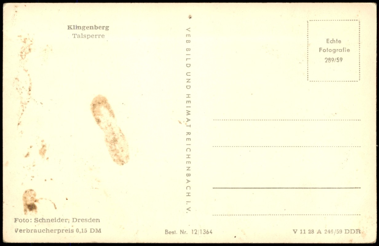 Postcart: Talsperre - Klingenberg (Sachsen)
