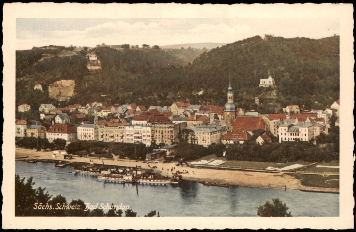Photo Card: Panorama-Ansicht Stadt und Elbe - Bad Schandau