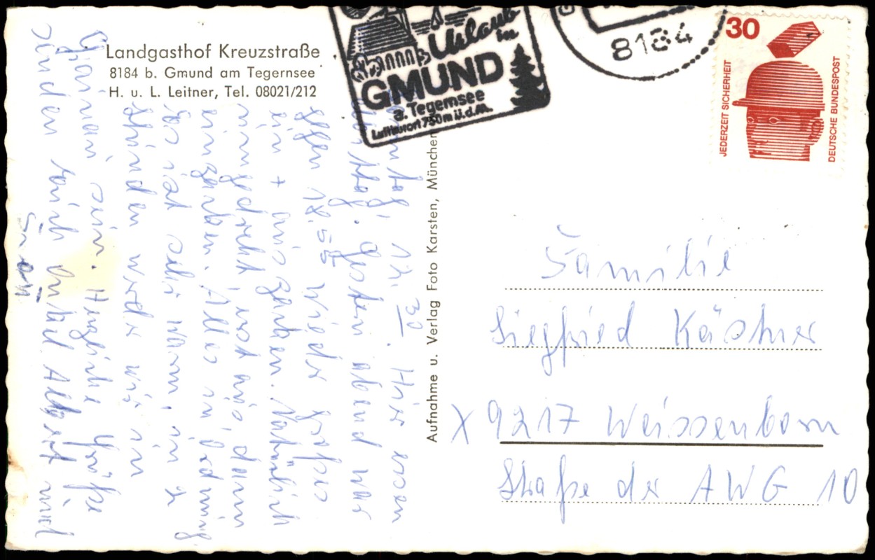 Postcart: Landgasthof Kreuzstraße - Gmund am Tegernsee