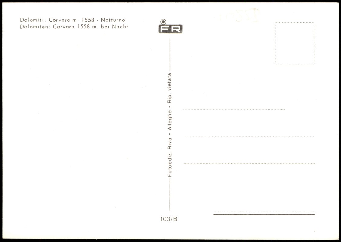 Photo Card: Dolomiti Corvara m. 1558 Notturno Dolomiten Corvara bei Nacht - .Trentino-Südtirol