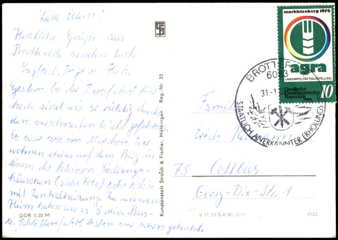 Photo Card: DDR Mehrbildkarte mit Umland-Ansicht, Schlittenfahrt, Siedlerstr. - Brotterode