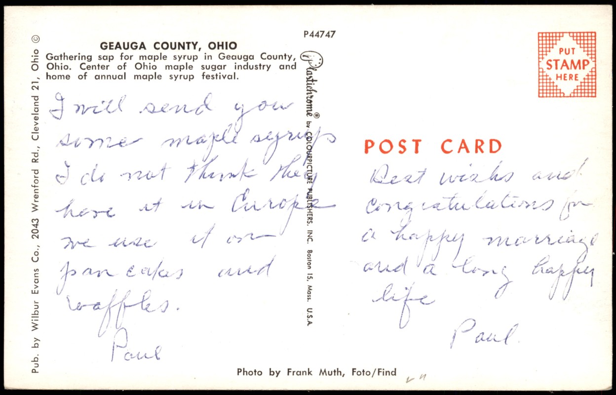 Postcart: GEAUGA COUNTY, OHIO USA Ahornsirup Ernte - United States of America