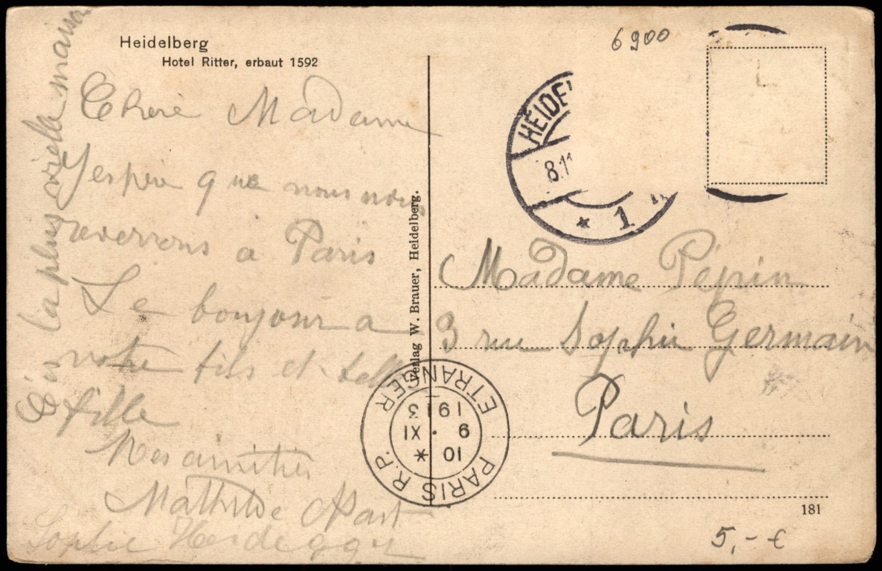 Postcart: Straßen Ansicht am Hotel Ritter - Heidelberg
