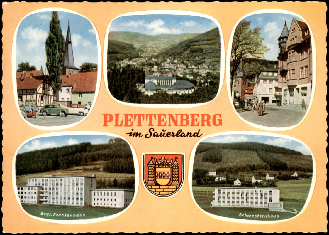 Photo Card: Mehrbildkarte mit Ortsansichten u.a. Evgl. Krankenhaus, Schwesternhaus - Plettenberg