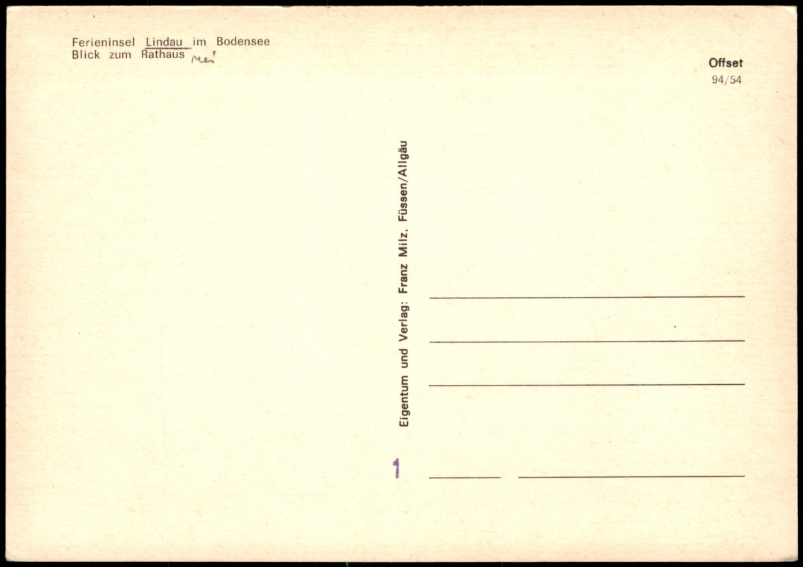 Photo Card: Blick zum Rathaus, Hotel Seehof mit Wienerwald Gaststätte - Lindau (Bodensee)