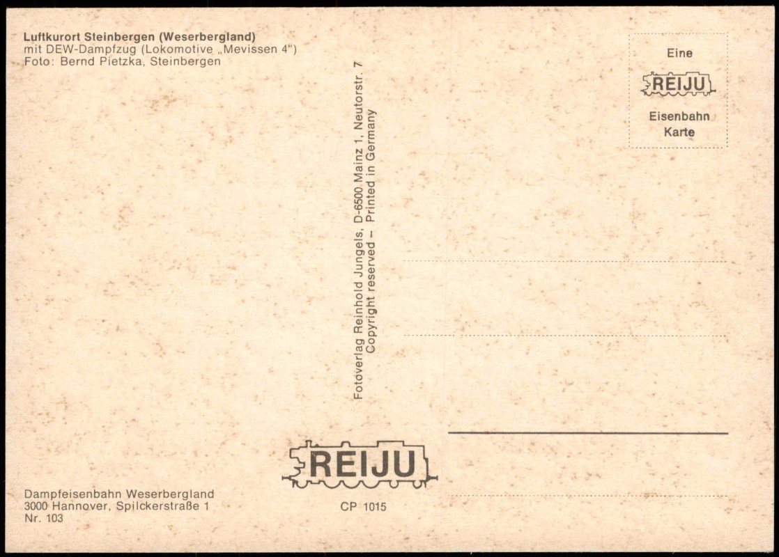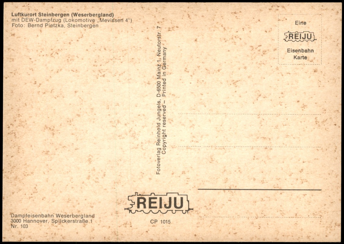 Photo Card: Dampflokomotive mit DEW-Dampfzug bei Steinbergen (Weserbergland)