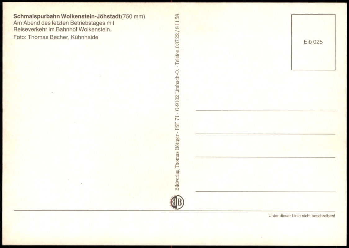 Photo Card: Schmalspurbahn Wolkenstein-Jöhstadt Reiseverkehr im Bahnhof Wolkenstein
