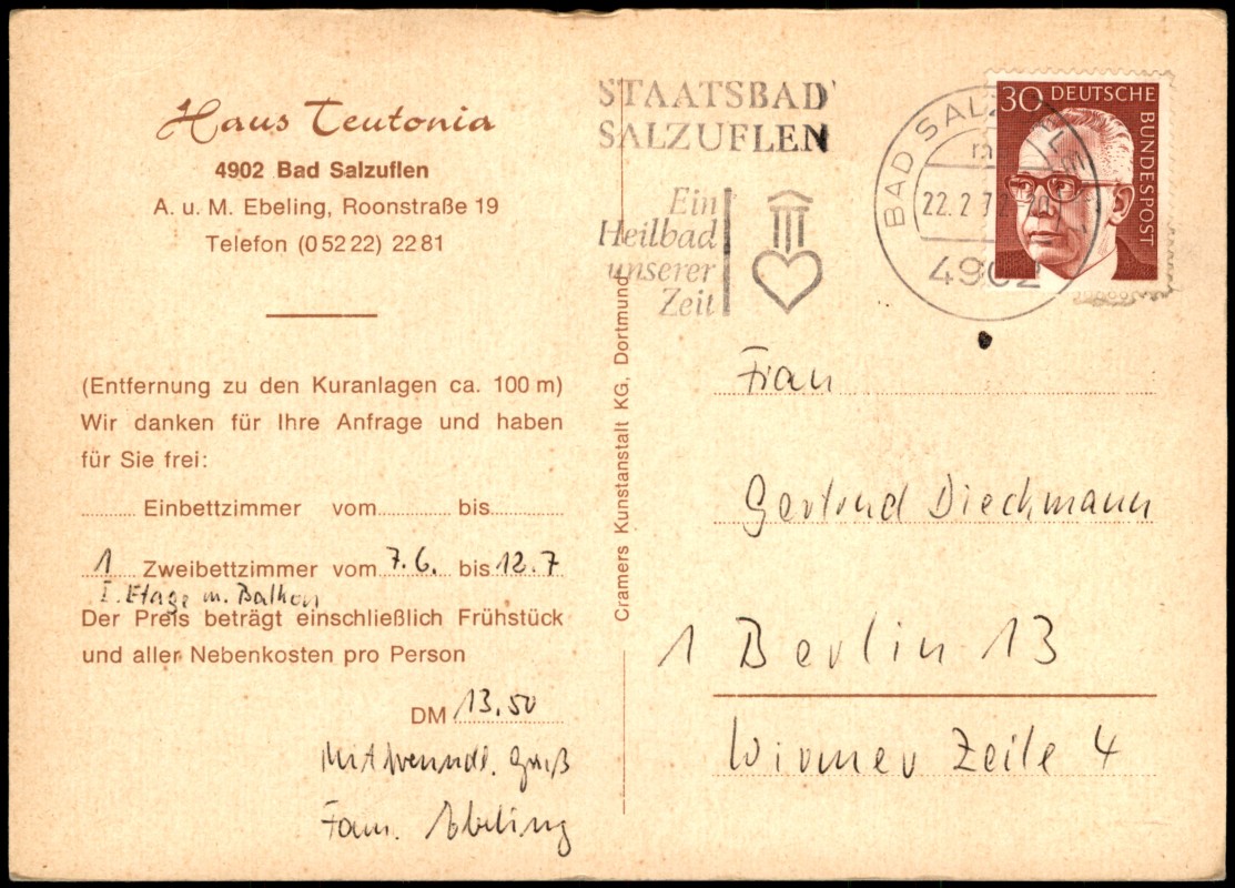 Postcart: 2 Bild Haus Teutonia Roonstraße 19 - Bad Salzuflen