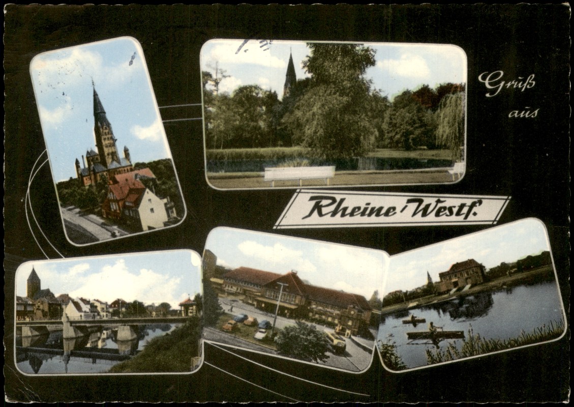 Postcart: 5 Bild Straße Brücke Bahnhof - Rheine Westfalen