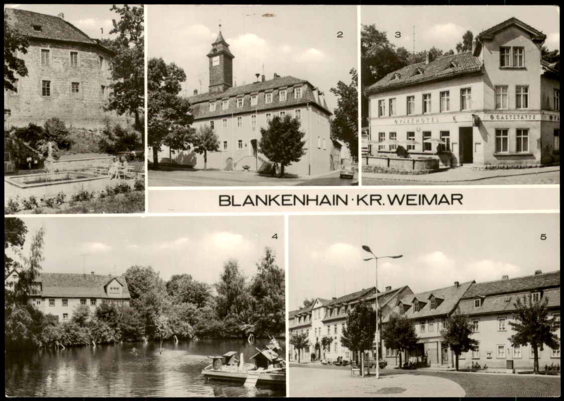 Postcart: Markt Rathaus Gaststätte Mehrbild - Blankenhain
