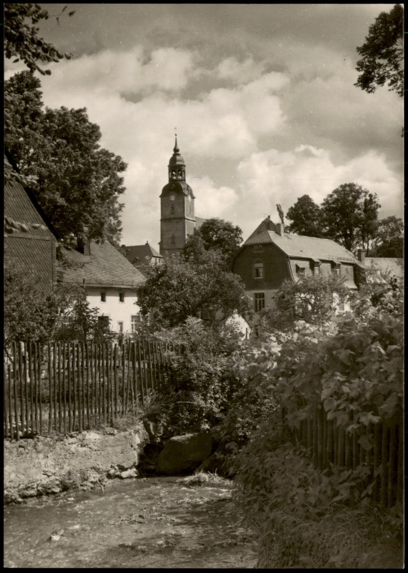Photo Card: Ortspartie mit Blick Kirche zur DDR-Zeit - Drebach (Erzgebirge)