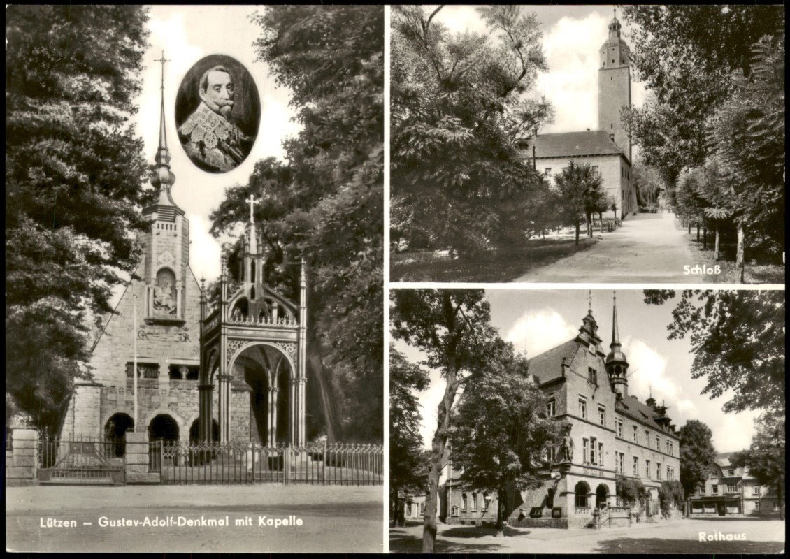 - DDR MB mit Gustav-Adolf-Denkmal mit Kapelle, Schloss, Rathaus