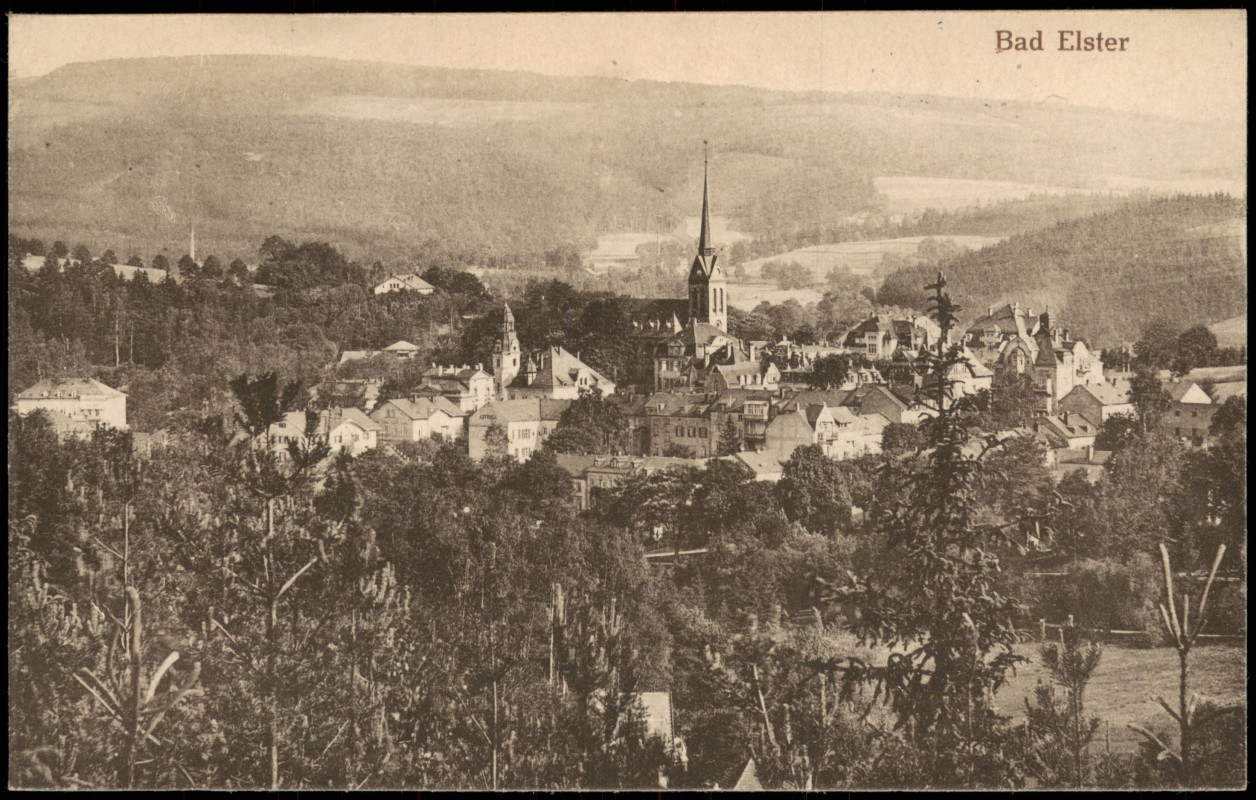 Postcart: Stadtblick mit Kirche - Bad Elster