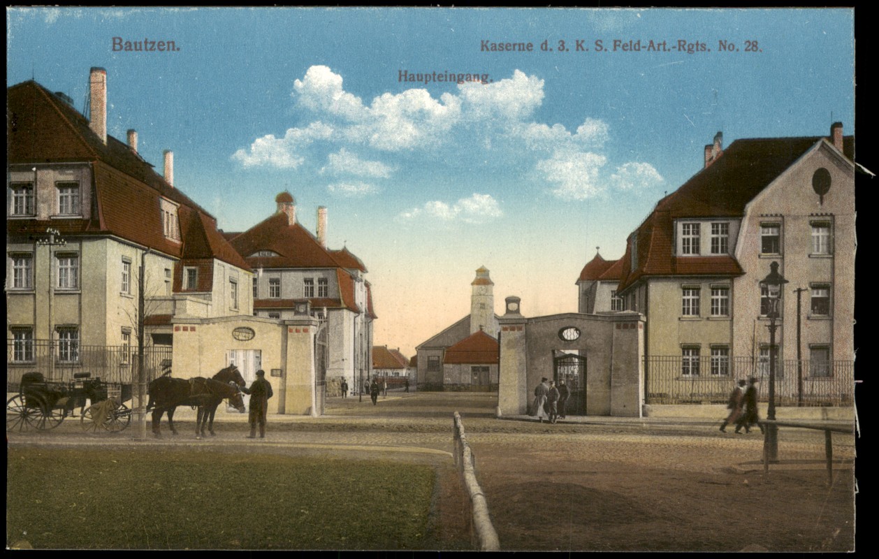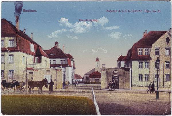 Postcart: Kaserne der 2. K.S. Feld-Art.-Regiments No. 28 / Haupteingang - Bautzen
